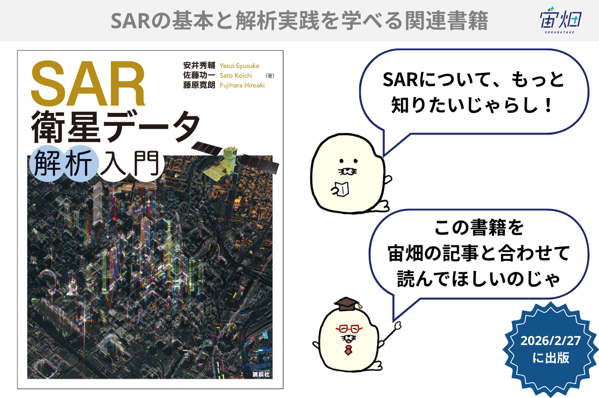 本連載「SARデータ解析者への道」の著者である安井秀輔さんが執筆した書籍『SAR衛星データ解析入門』が2026年2月27日に出版されます。本連載を通してもっとSARについて学びたい!という方にはおすすめの1冊です。
