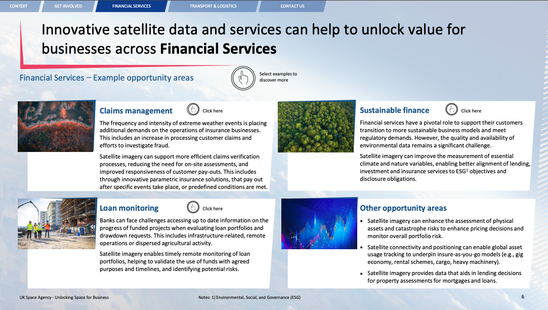 また、イギリス宇宙機関のInternational Director アヌ・オージャさんは、宇宙を使ったソリューションの非宇宙産業の利用を促進するために実施しているイギリスのプログラムの例として「Unlocking Space for Business」を挙げました。Unlocking Space for Businessは、金融サービス、運輸、物流分野のエンドユーザー企業向けに、衛星を活用したサービスの利用を促進する取り組みです。