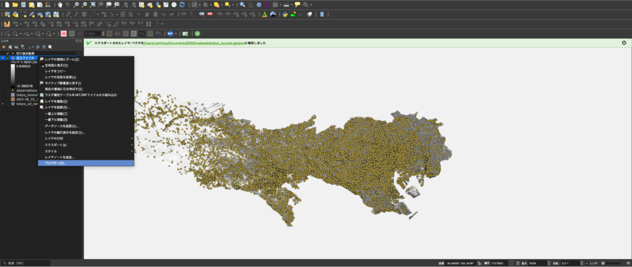 5.NDVI・生物観察データを東京都ポリゴンで型取る
