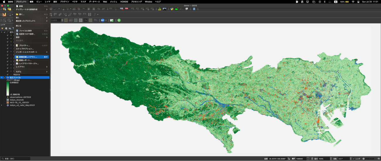 本記事では、オープンな衛星データと地理情報ソフト「QGIS」を使って、東京の生物多様性を題材に、上記の地図デザインを作成した、その方法を紹介します。記事を読み進めることで、無料の衛星データを使いながら、同じ地図デザインを完成させる過程を体験していただけます。