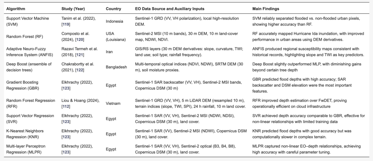 ・例: RF回帰, SVR, GBR, MLPを用いた研究(例: HoustonのMaxFloodCast, R² ≈ 0.95, RMSE ≈ 0.19 m)