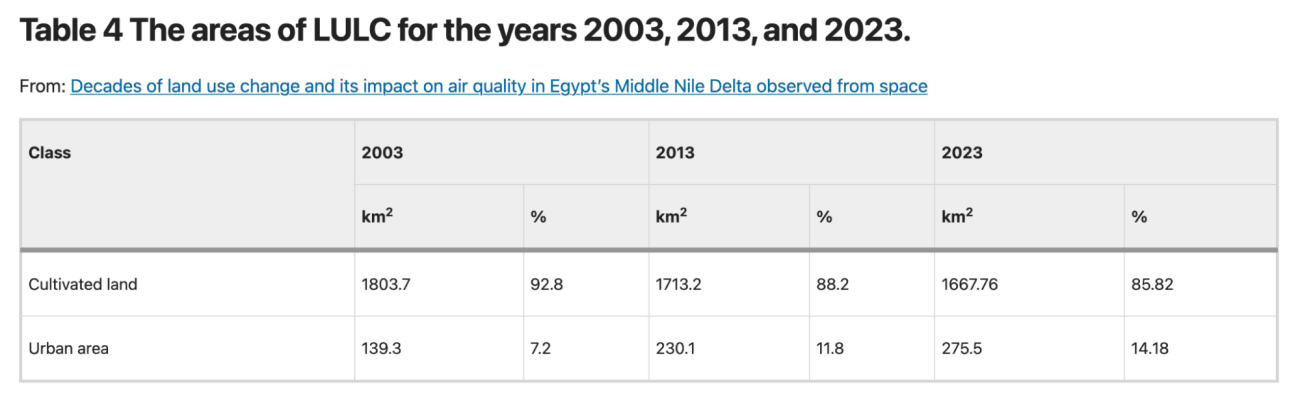 Decades of land use change and its impact on air quality in Egypt’s Middle Nile Delta observed from space
