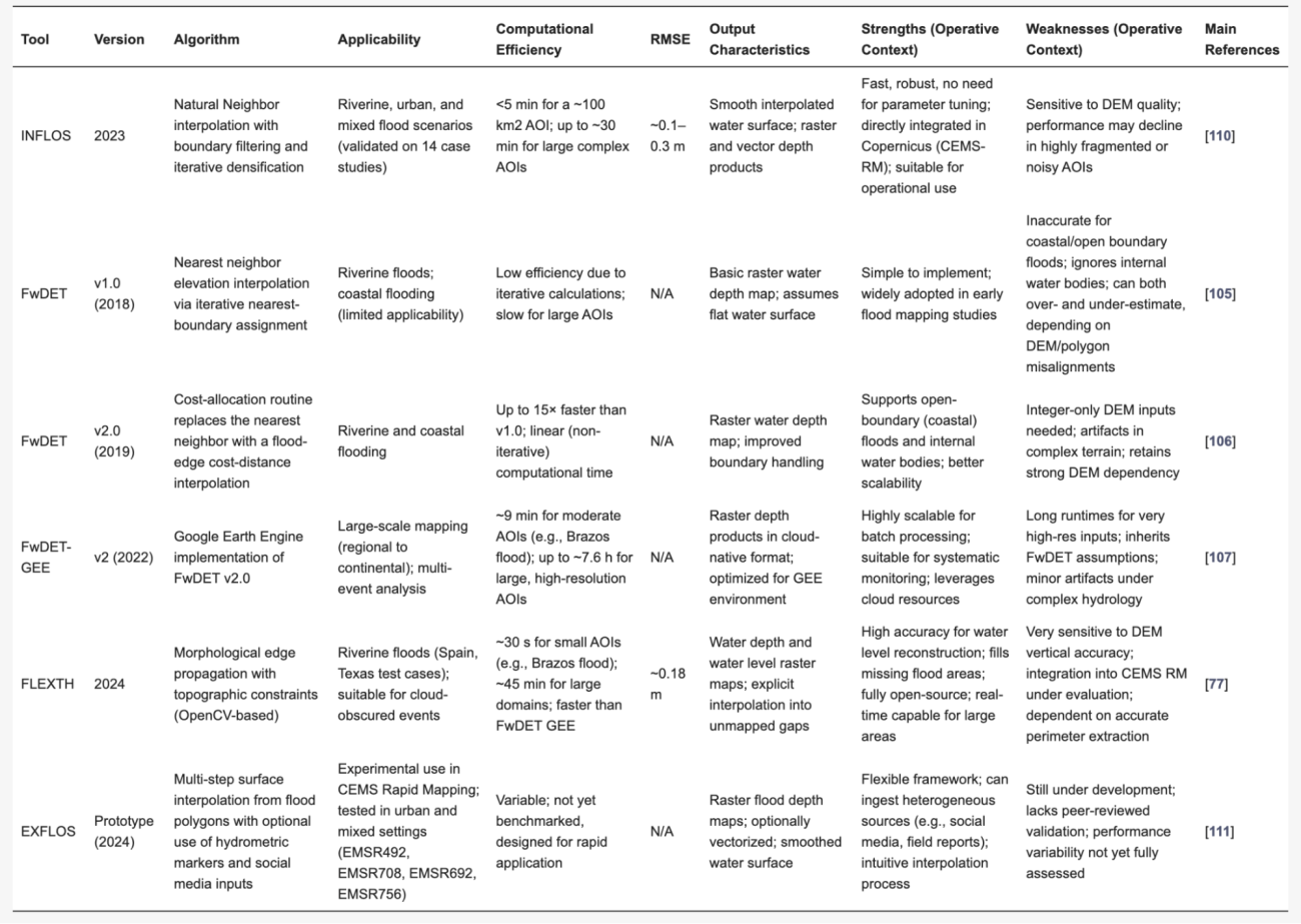 ・例: FwDET, FLEXTH, INFLOS, EXFLOS(いずれもDEM補間系ツールとして運用や検証が進む)