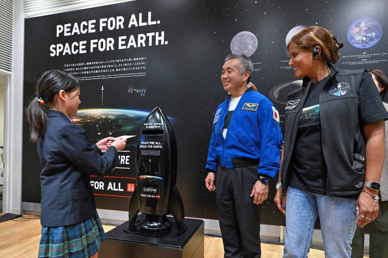 ユニクロのTシャツプロジェクト「PEACE FOR ALL」に、宇宙と地球をモチーフにしたデザインが新たに登場。宇宙飛行士の若田光一さんと、Tシャツのデザインに携わった宇宙飛行士のサイアン・プロクターさんが、小中学生約20人に自身の体験や考え方を語りました。