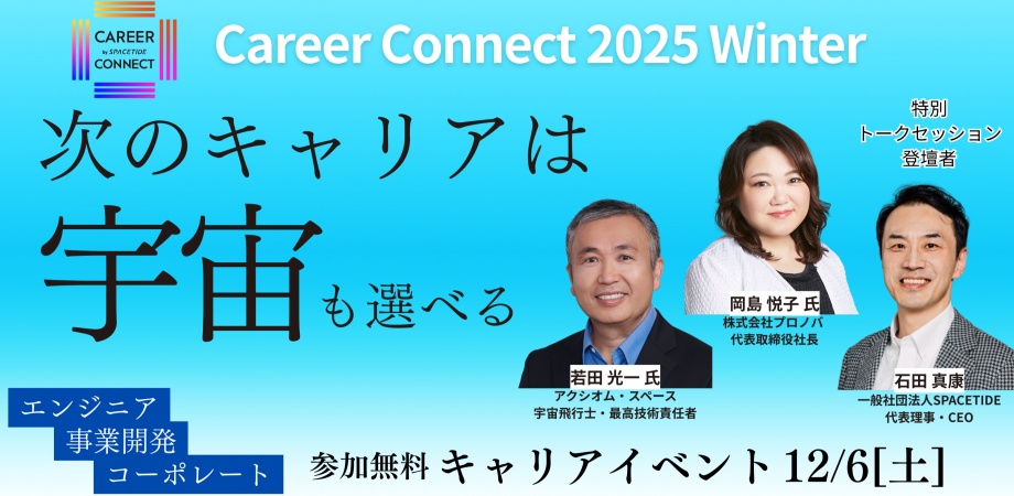 2025年12月6日、宇宙業界に特化した最大規模のキャリアイベント『SPACETIDE Career Connect 2025 Winter』が開催されます。イベントの概要や出展企業、特別なトークセッションについて紹介します。