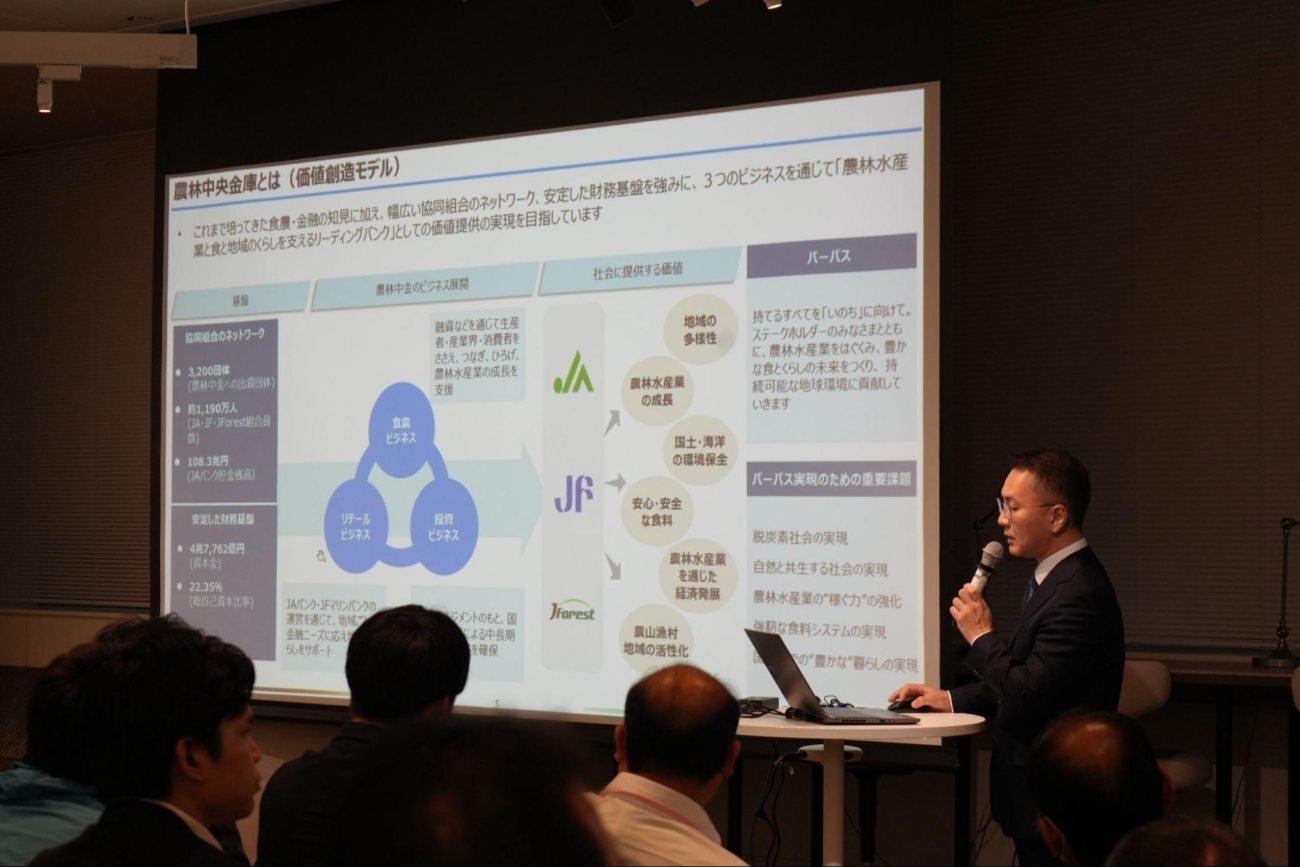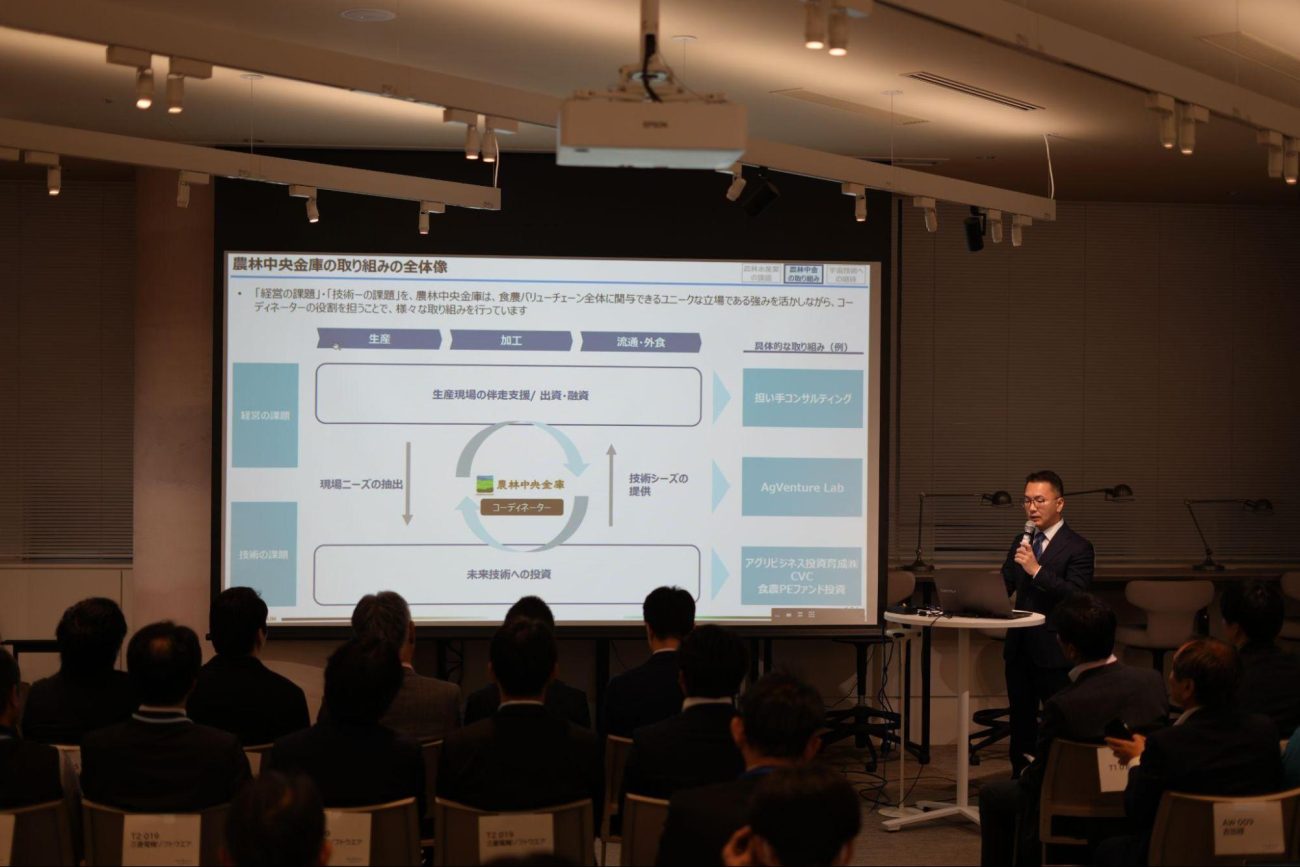 本アワードには「持てるすべてを『いのち』に向けて。〜ステークホルダーのみなさまとともに、農林水産業をはぐくみ、豊かな食とくらしの未来をつくり、持続可能な地球環境に貢献していきます〜」というパーパスのもと、食と農の未来を支える挑戦を続ける農林中央金庫が協賛。当日は「本アワードを通じた農林水産業の未来への期待」と題した、農林中央金庫事業戦略投資部の高橋安芸介副部長による講演が行われました。