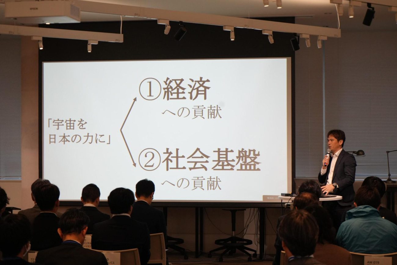 経済産業省製造産業局宇宙産業課の高濱課長からは「宇宙産業政策について」と題して、経済産業省における宇宙産業活性化の取り組みについての説明と本イベント参加者への期待が語られました。