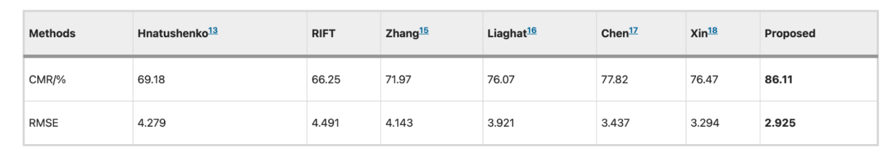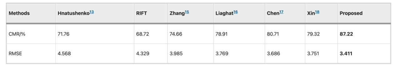 ・本研究の手法の平均CMRが88.72%となっており、光学–SAR共通の「角・エッジ構造」を確実に検出し、SAR特有のスペックルノイズを平均化しつつ安定した構造記述(説明)をできていると考えられる
