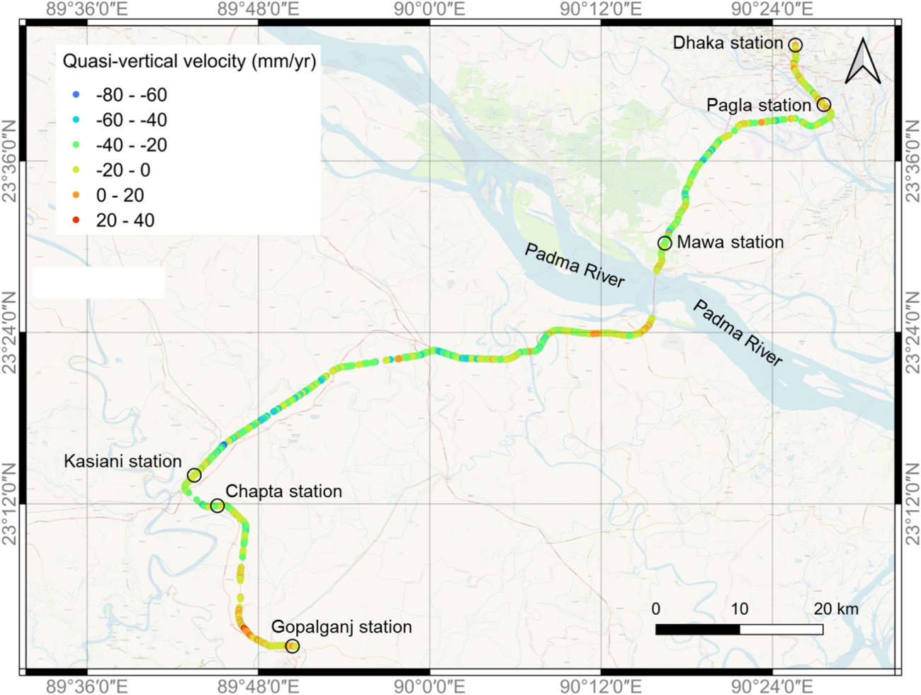 Instability mapping of Dhaka-Kasiani-Gopalganj railway line in Bangladesh with InSAR time series analysis