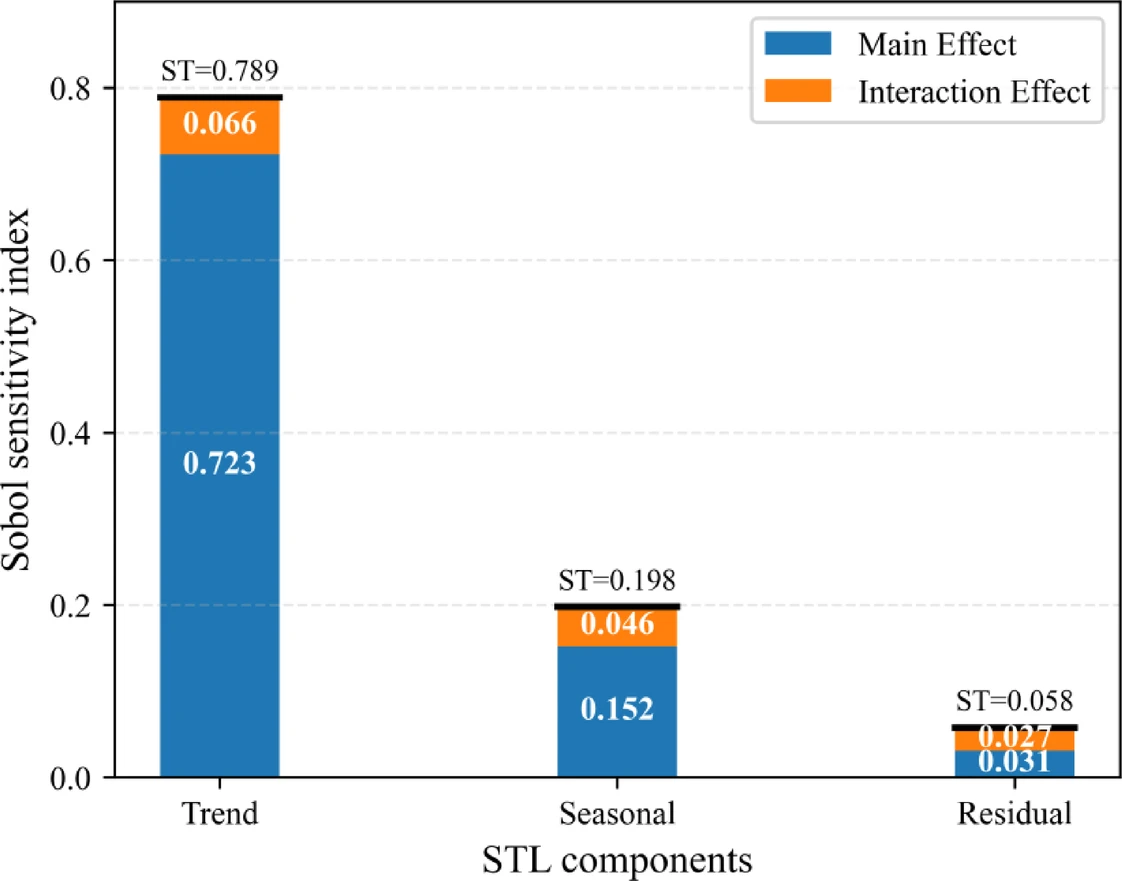 ・トレンド成分(長期傾向)に関して、主効果は72.3%、全効果(他成分との相互作用を含む)は78.9%を占めており、モデルの予測性能を支配する主要因であることがわかった