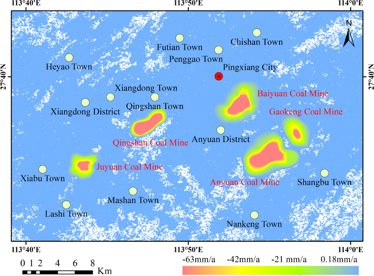 ・対象地域:中国 江西省萍郷(Pingxiang)市の主要炭鉱5地区