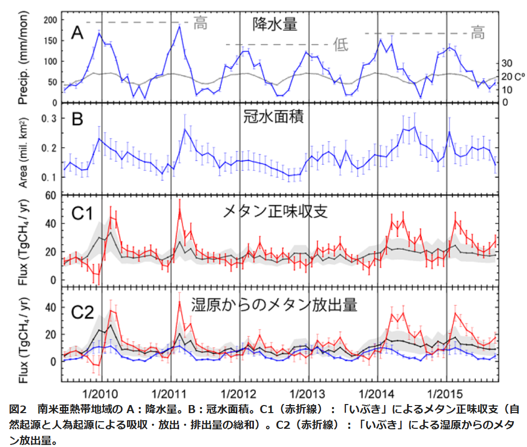 衛星観測が捉えた南米亜熱帯地域のメタン放出量と気象の関係 ~温室効果ガス観測技術衛星「いぶき」によるメタン推定値と降水データの解析~|2021年度