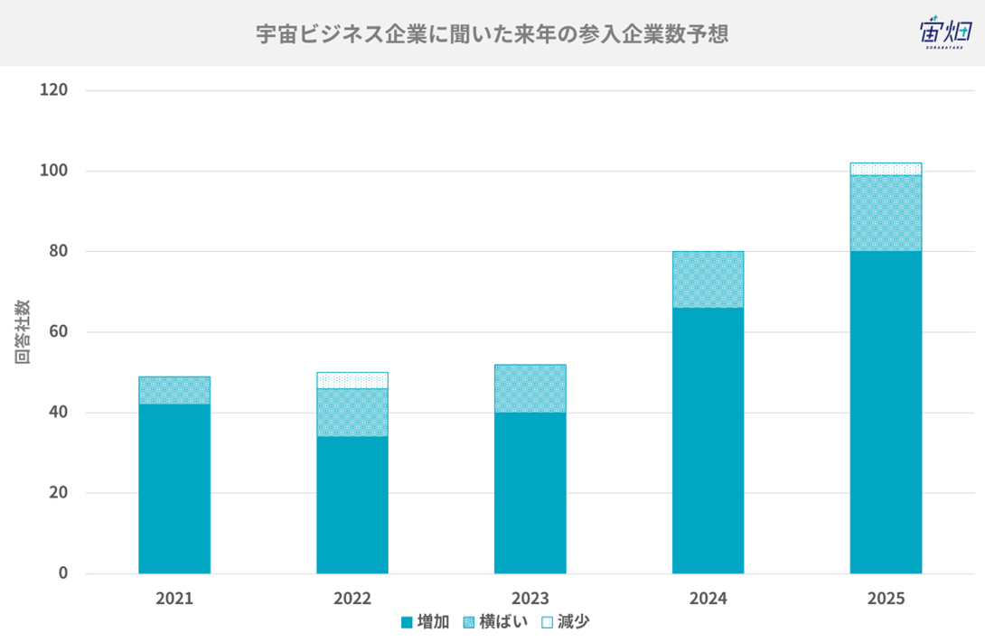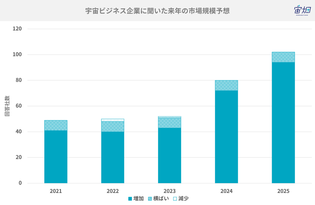宙畑では、2021年度のアンケートから毎年、各企業様に次年度の宇宙ビジネス予測を、投資額・市場規模・新規参入企業数の3つの観点で伺っています。