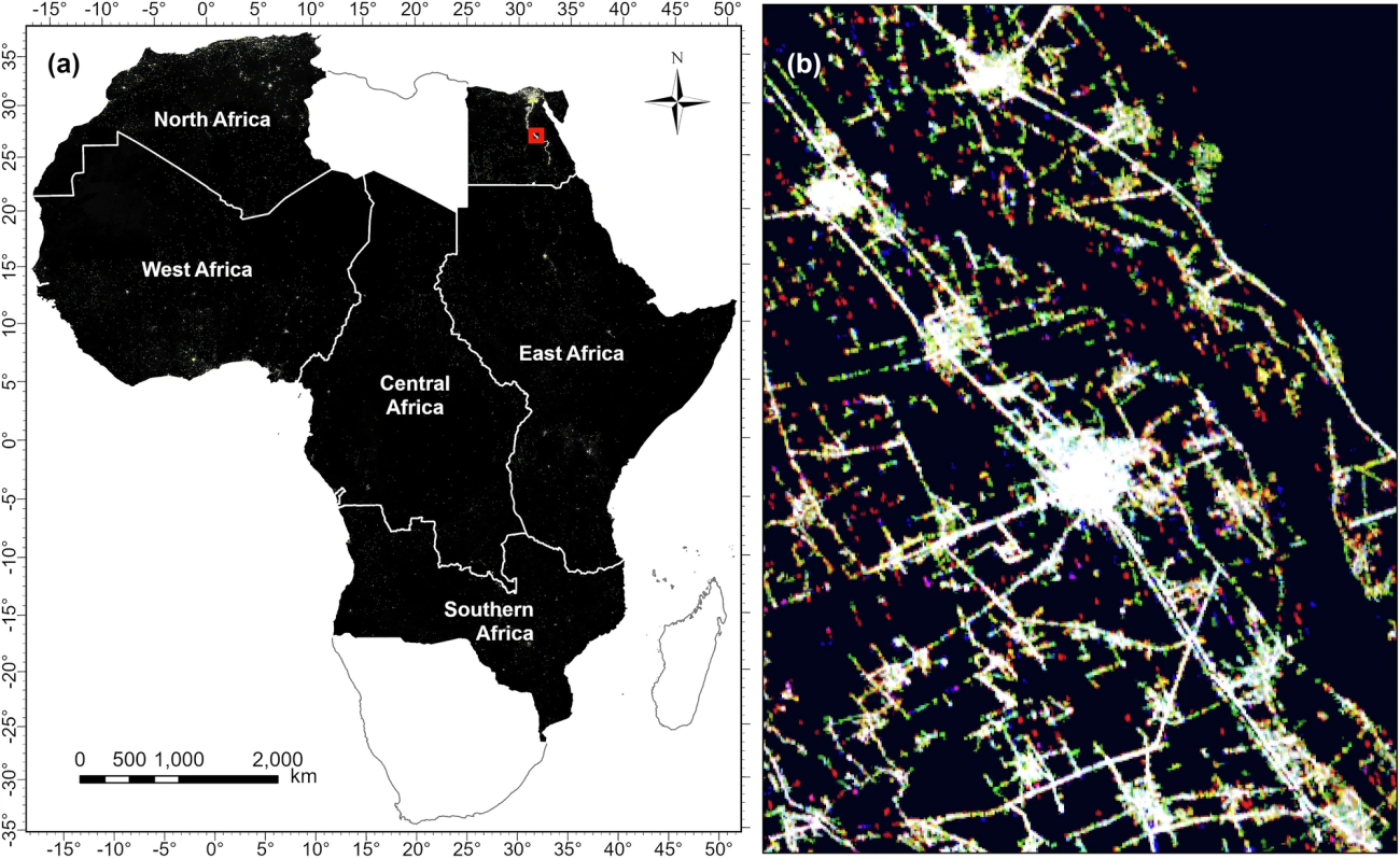 ・本論文では、世界初のSDGs科学衛星「SDGSAT-1」の高解像度夜間光画像を活用し、アフリカ全土(44カ国)の農村部における道路照明の普及率を定量化し、国レベルおよび州・県レベルでの格差を明らかにし、人口分布と照明インフラへのアクセス性の相関を解明する