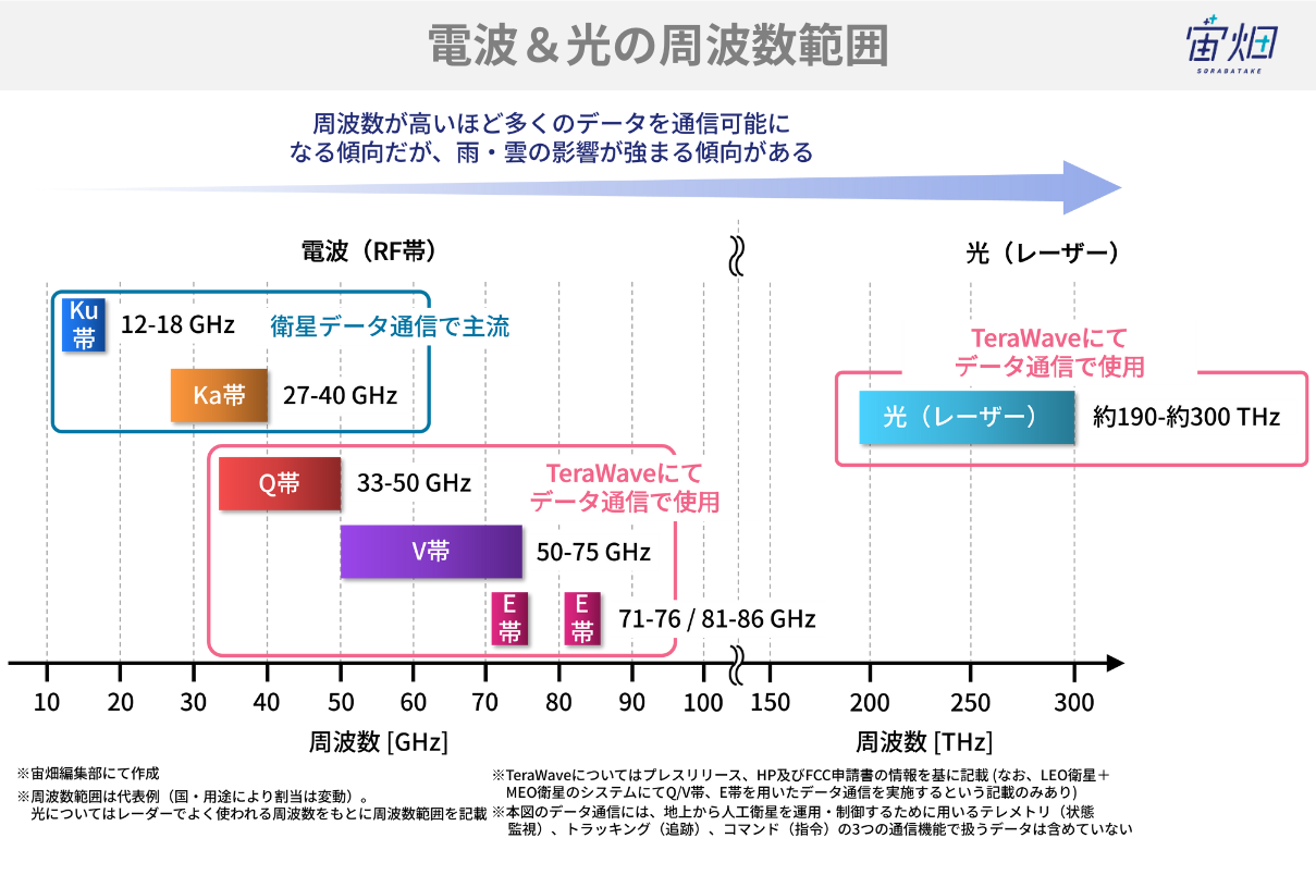 「高周波数のRF通信と、衛星間・衛星-地上間の光通信の組み合わせ」がTeraWaveの最大の差別化要素です。