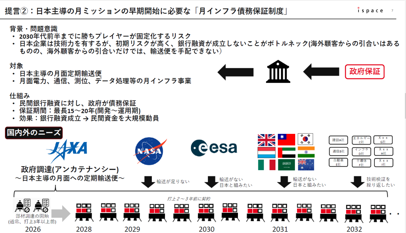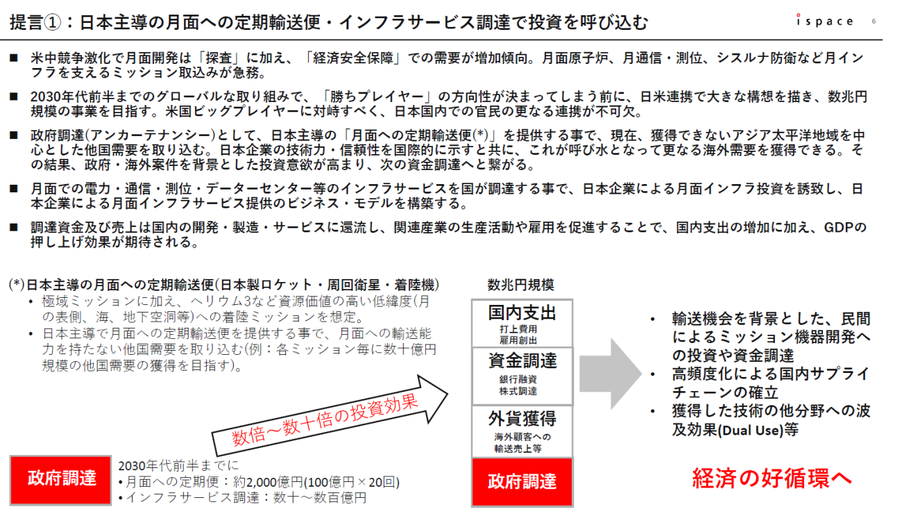 ispaceの袴田氏は、累計1,000億円超の資金調達を実現しながらも日本政府由来の売上は約2割にとどまる現状を指摘。月輸送分野で10年間2,000億円規模のアンカーテナンシーを示すことで民間投資を呼び込む「レバレッジ効果」が期待できると提言がありました。