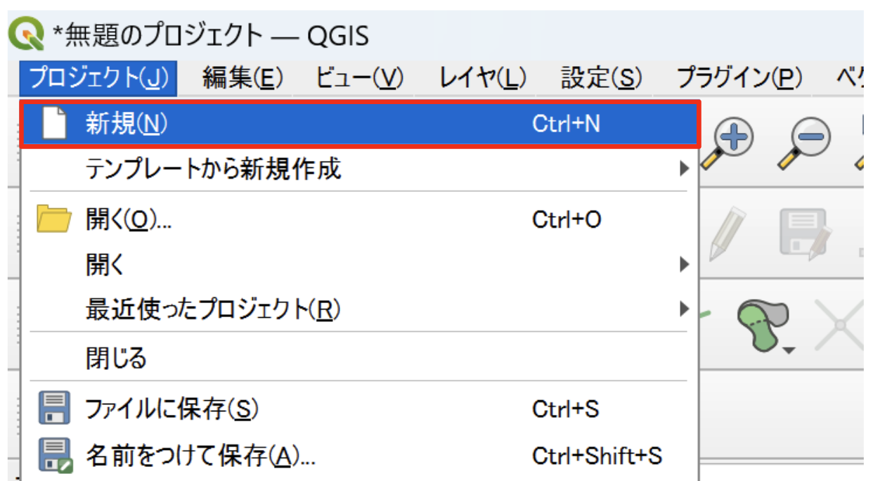 さきほどのプロジェクトが残っている場合は、メニューバーの[プロジェクト]→[新規]をクリックして、新規プロジェクトを開いておきましょう。