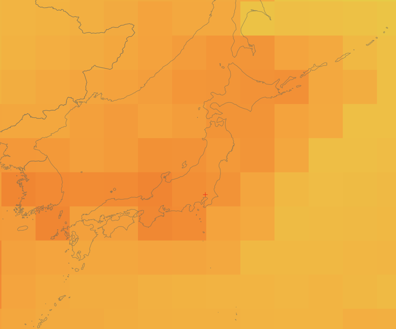 マップ上で対象地点をクリック Credit : Natural Earth/Tellus Original data provided by JAXA/NIES/MOE